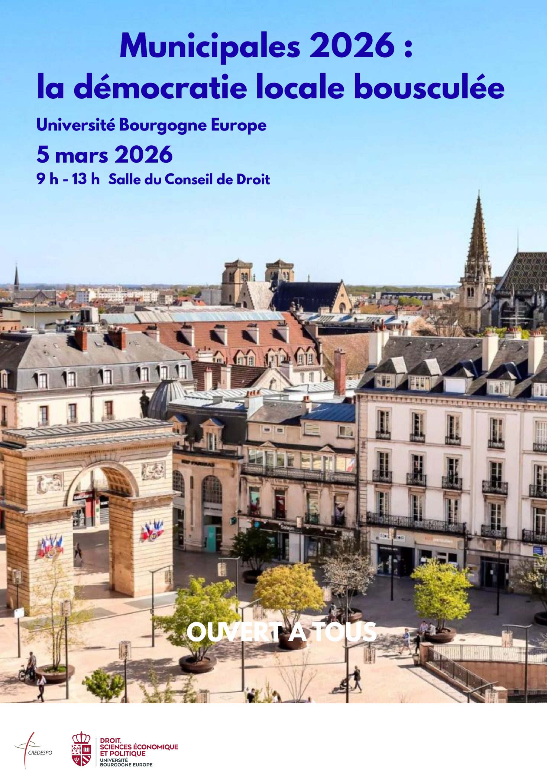 Colloques et journées d'études du CREDESPO Matinée d’étude : « Municipales 2026 : la démocratie bousculée »